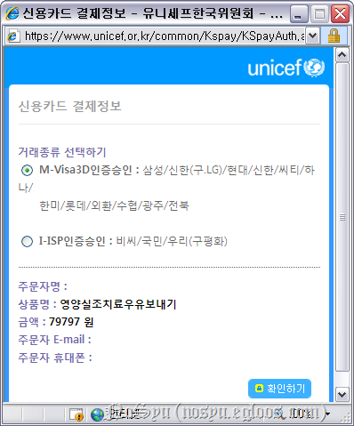 신용카드로 기부를 할 것이라 이런 창이 뜨더군요.